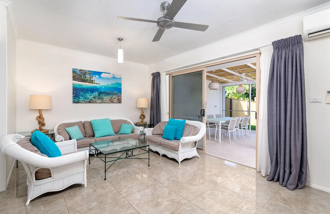 パティオとゴルフコースを提供するReef Terraces On St Crispinsヴィラはワイルドライフ・ハビタットから1.4km以内です。 敷地内には1のバスルーム、3のベッドルームと台所があります。